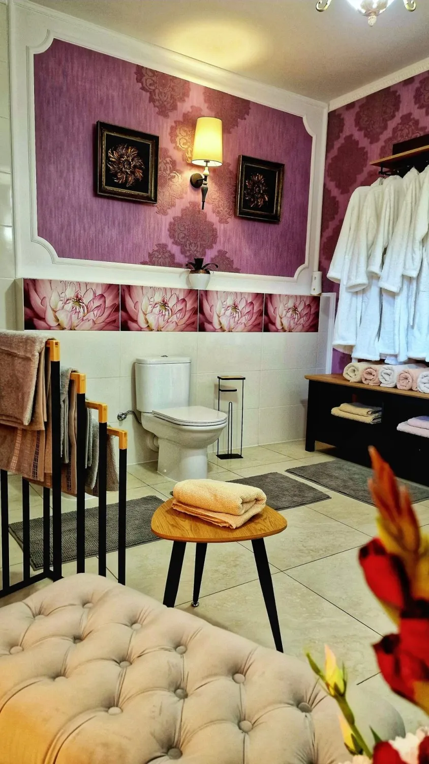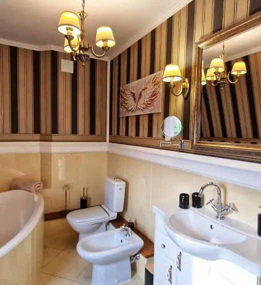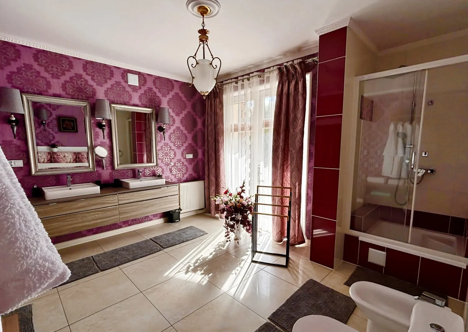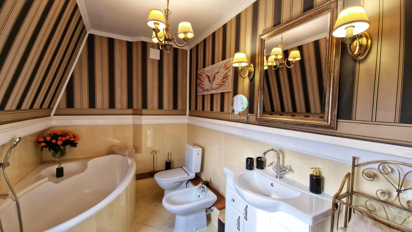 W obiekcie znajdują się cztery wyjątkowe łazienki – jedna wspólna, dostępna na parterze oraz trzy prywatne, przynależące do sypialni.