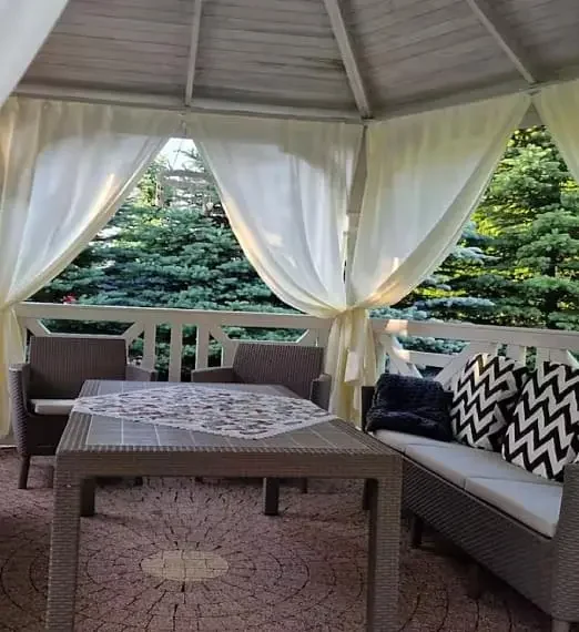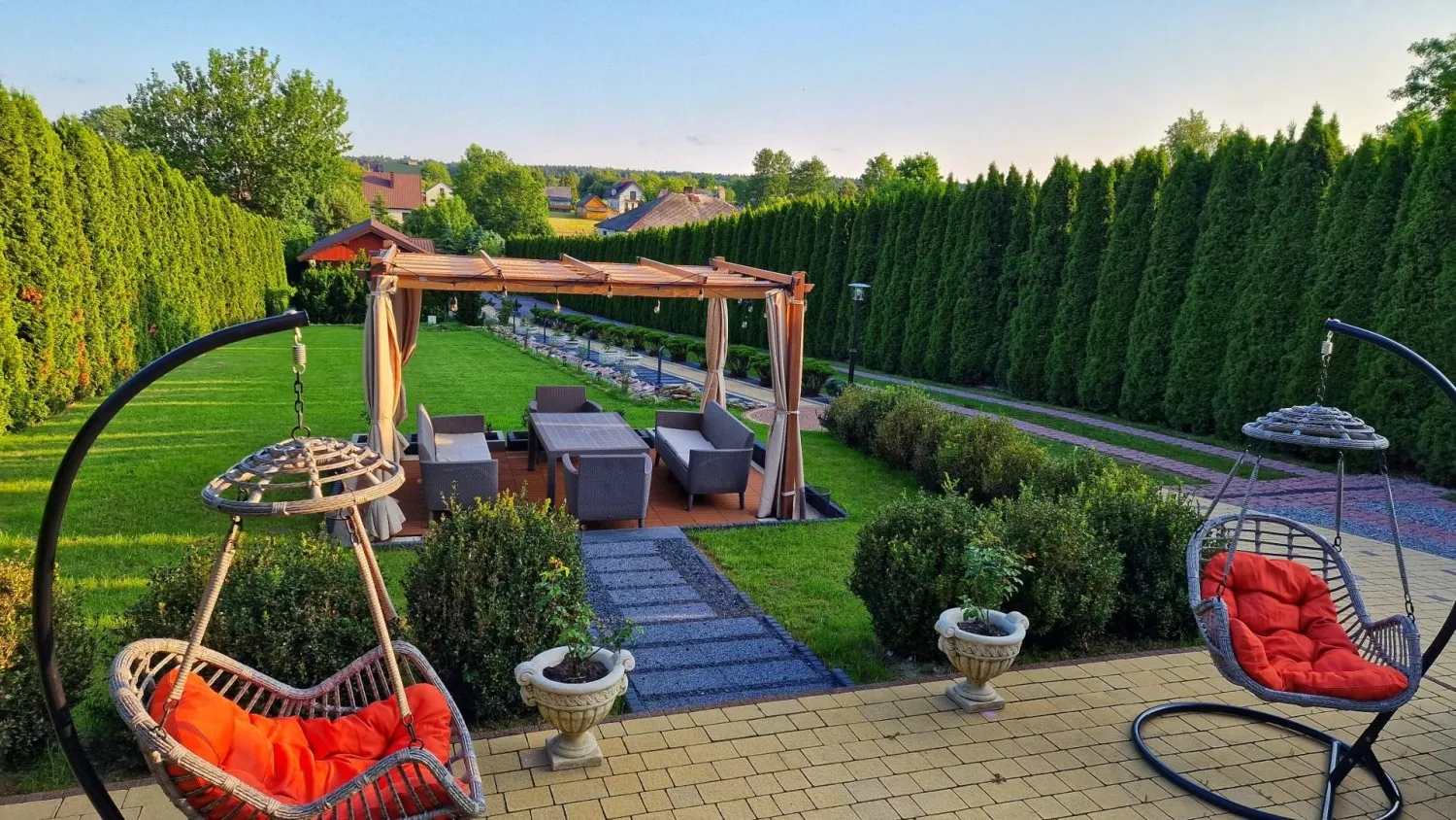 Altanka relaksu z huśtawkami i komfortowymi siedziskami