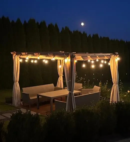 Bezpośrednie wyjście do ogrodu z klimatyczną altaną grillową